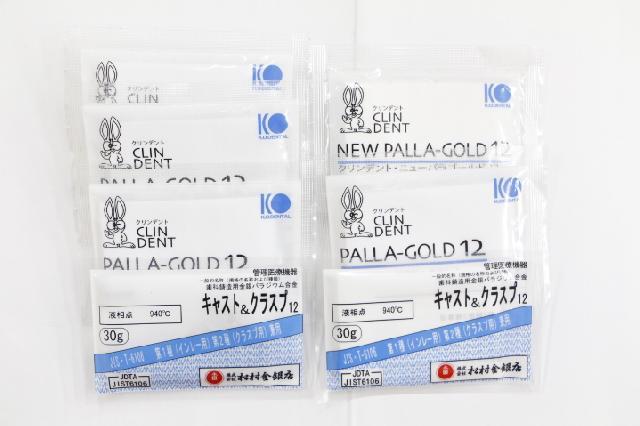本日お客様からお預かりしました12%金パラ・歯科用金属、撤去冠・研磨粉・鋳造合金などの歯科貴金属スクラップ、金パラ製品のGCキャストウェルなどをご紹介します。