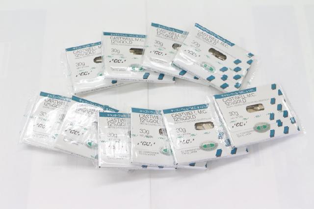本日お客様からお預かりしました12%金パラ・歯科用金属、撤去冠・研磨粉・鋳造合金などの歯科貴金属スクラップ、金パラ製品のGCキャストウェルなどをご紹介します。